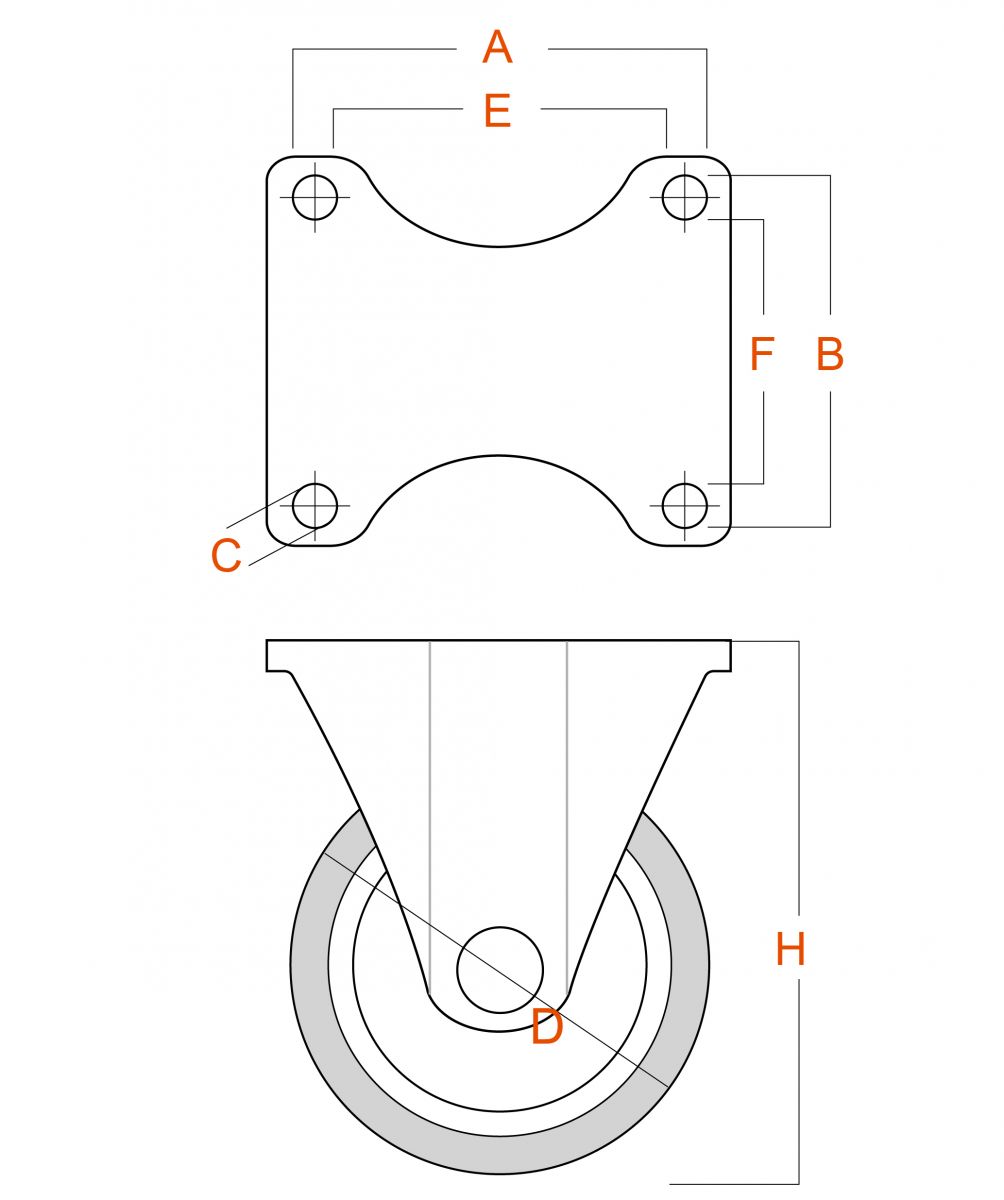 產品名稱:4" 黃色PU 鋁芯重型輪-固定